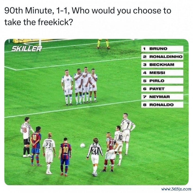 C罗、内马尔、帕耶、皮尔洛、梅西、贝克汉姆、小罗……还是B~~~~~~~~费~~~~~~?