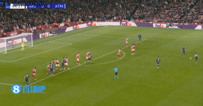 上半场加时补赛1分钟,半场结束,阿森纳暂0-0马竞。