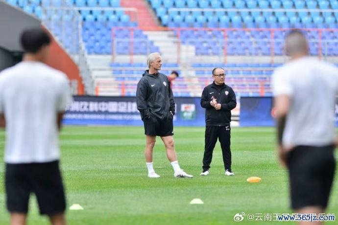 今天下午,云南玉昆来到玉溪高原体育运动活动 中心运动场 进行了赛前官方踩场练习 ,在练习 开始前,助理指导教练员沃尔夫冈与球员代表陈宇浩出席了赛前新闻发布会。
