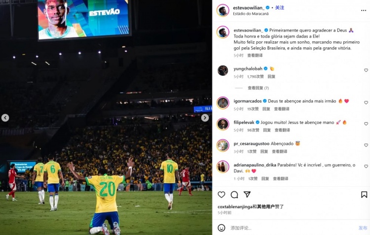 9月6日讯 巴西在本轮世预赛3-0完胜智利,蓝军小将埃斯特旺倒钩打进个人国家队生涯首球。
