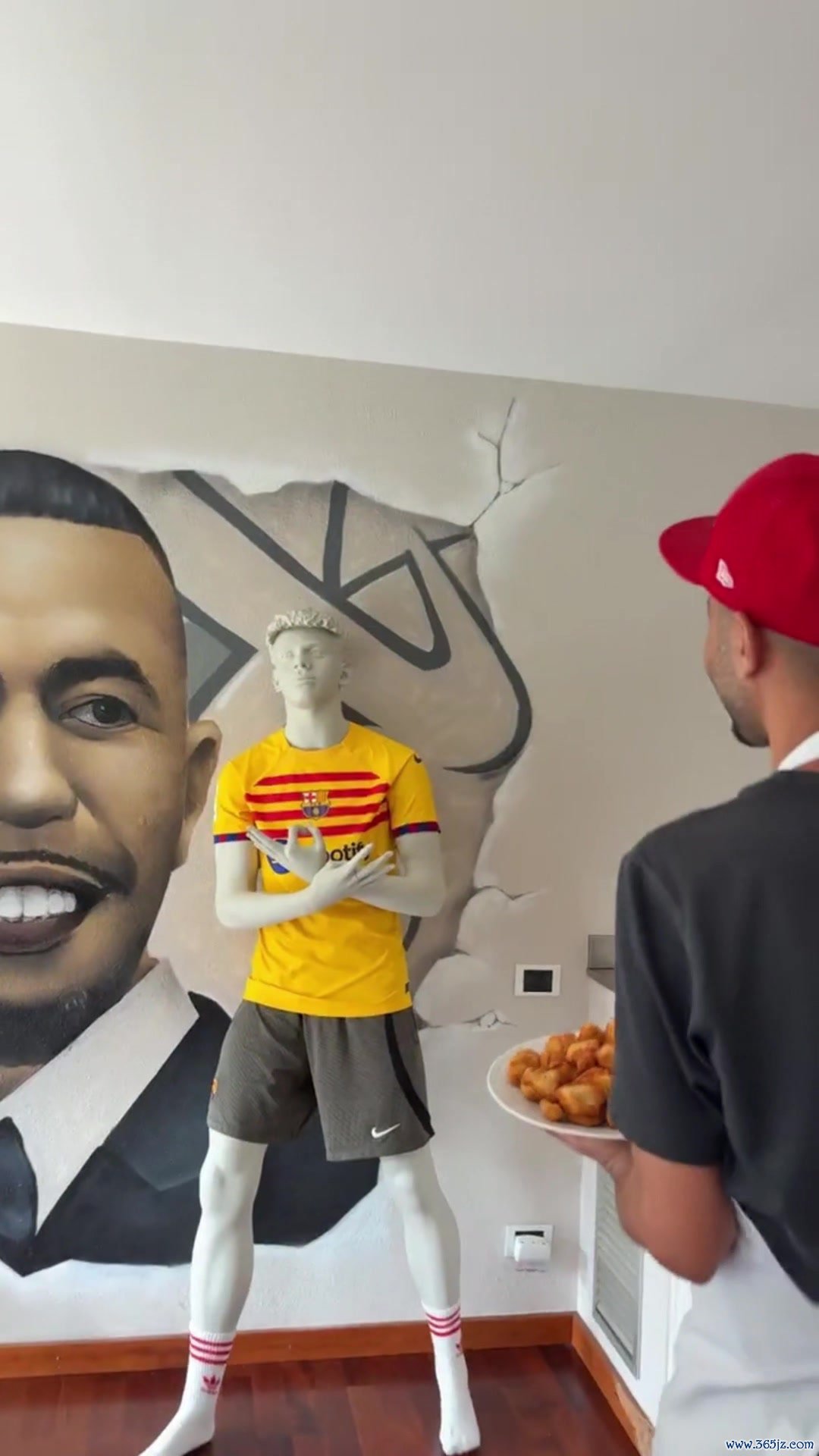 在视频的最后,镜头转到房间的一面墙,那里摆着一个亚马尔标志性庆祝动作的模型, 游泳快讯亚马尔的父亲拿着鸡块说:“嘿, 网球新闻高清直播拉明西甲直播,德甲你还好吗?我特别爱你,孩子,爸爸爱你。我给你准备了惊喜,小可爱。等会儿给你戴上,咱就给大伙儿瞧瞧。我爱你。”