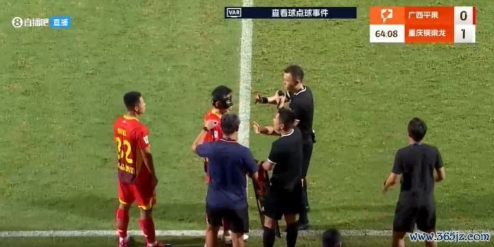 此时现场字幕给出VAR介入了此次判决 ,可能要判给广西十二码球,然而现场撞车不断。