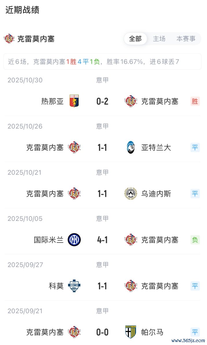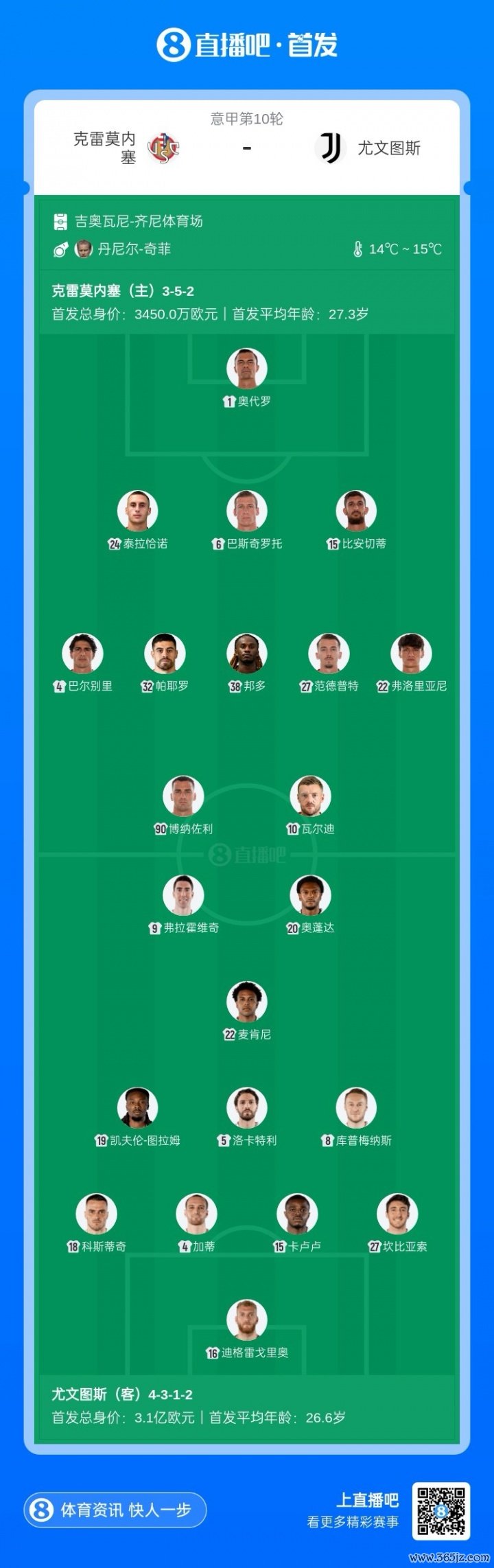 11月2日讯 意甲第10轮,德甲足球直播吧克雷莫内塞主场作战 迎战尤文赛事 即将打响。赛前杆位出炉。