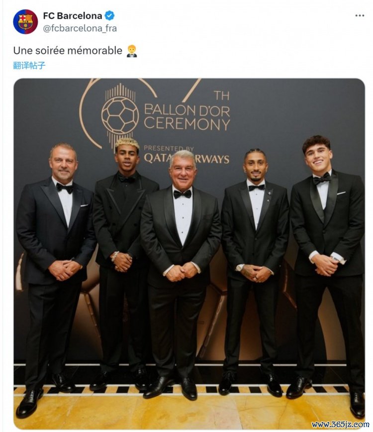 拉波尔塔、弗里克、亚马尔、拉菲尼亚、库巴西出席金球奖颁奖典礼, 游泳快讯足球直播吧巴萨官方社媒晒出他们的合照, 网球新闻配文:“一个难忘的夜晚。”