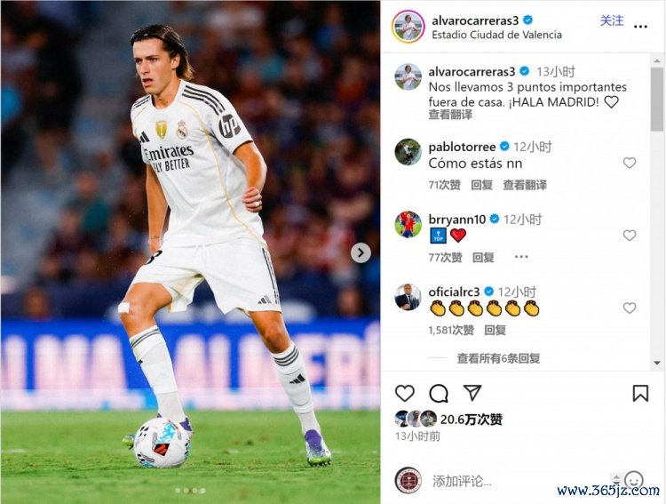 卡雷拉斯社媒晒出比赛照片, 游泳快讯直播平台庆祝球队取胜, 网球新闻他写道:“我们在客场拿下重要的3分!Hala Madrid!”