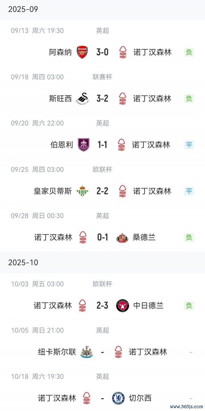 诺丁汉森林赛程: