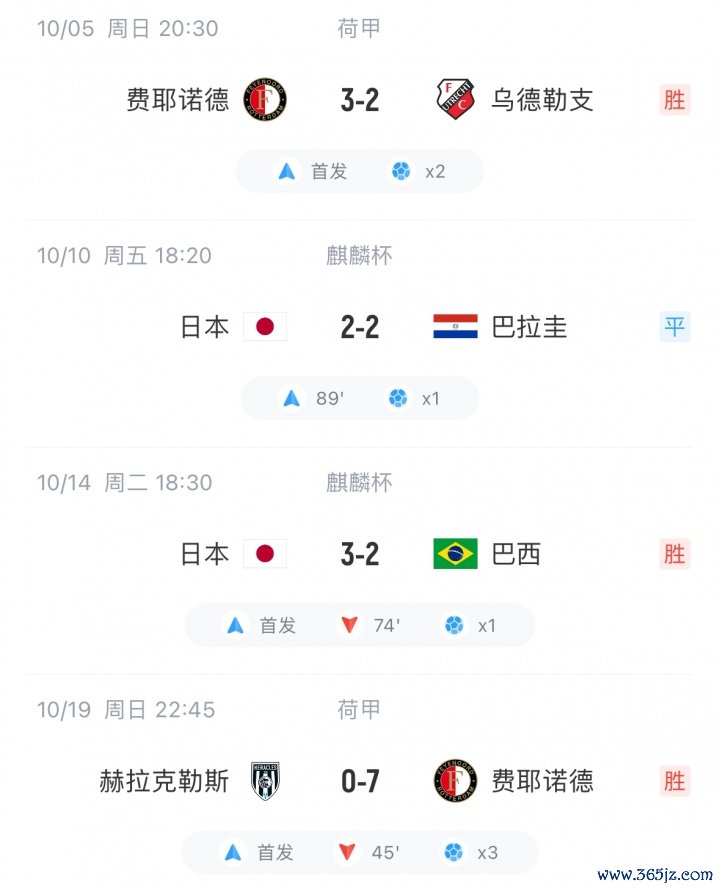10月20日讯 荷甲第9轮,费耶诺德7-0大胜赫拉克勒斯,日本前锋上田绮世上半场就完成帽子戏法。