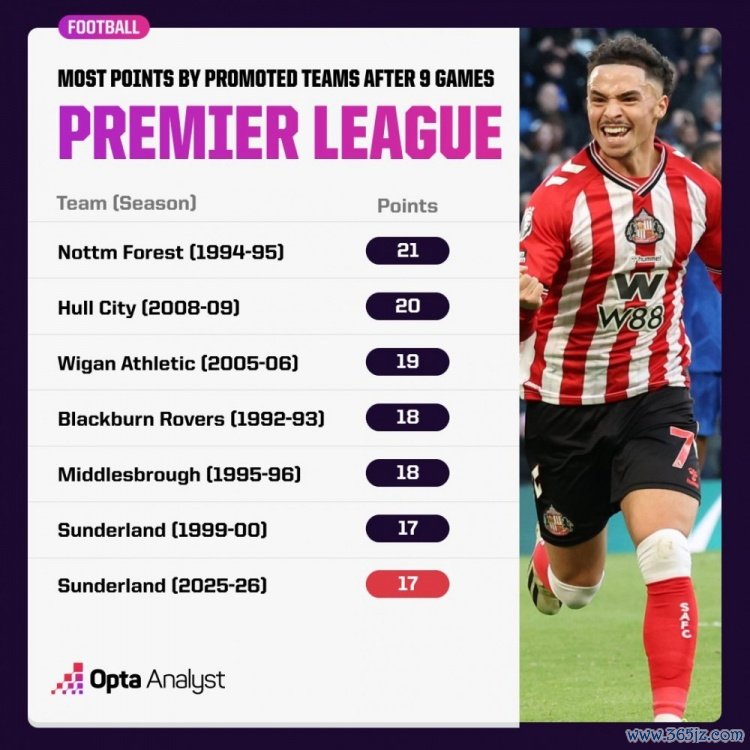 6.桑德兰 (2025-26赛季)英超在线直播 免费,17分