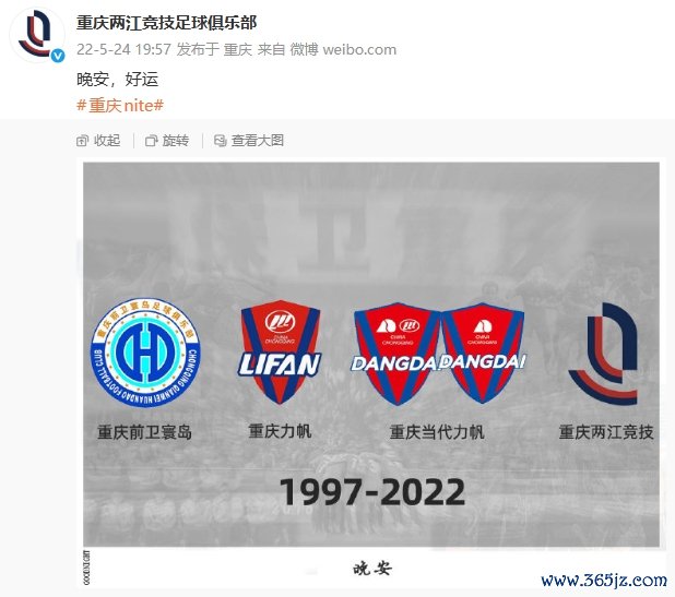 2025中甲大结局,重庆铜梁龙成功升超,德甲明年中超将再度出现重庆球队的身影。上一支征战中超的重庆球队是2021赛季的重庆两江竞技, 游泳快讯五大联赛但是球队在2022年5月24日宣布解散。那一天球队官方媒体发布的最后一条动态是:晚安, 网球新闻好运。配图是球队的历代队徽和队名。