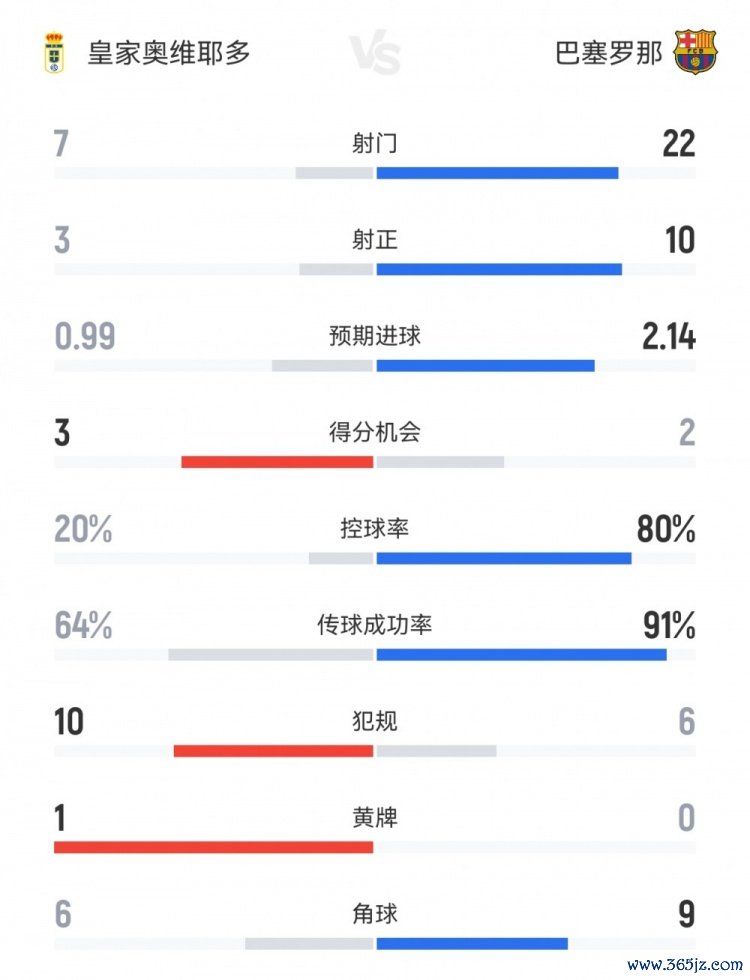 9月26日讯 本轮西甲, 网球新闻足球直播巴萨3-1客胜奥维耶多。双方全场重积分 据对比如下↓(主队奥维耶多在前)
