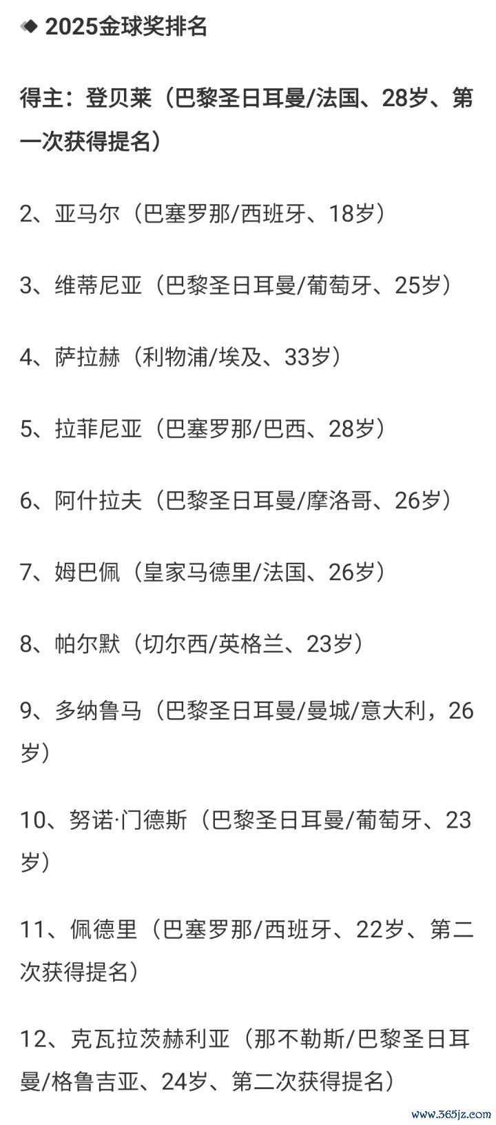 骆明表示:恭喜登贝莱获得金球奖。不过我的选票还不能公布,因为《法国古代足球 》杂志今年特地要求,德甲具体选票不能先于他们公布。我只能暗示一下, 游泳快讯体育赛事我的选票前五与最后前五(下图)人选一致, 网球新闻有三人顺序也一样,只有两个人顺序差了一位。您大概可以猜到我的选票了。