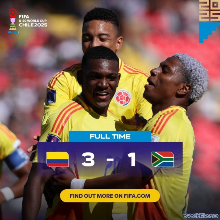 10月9日讯 世青赛1/8总决赛 ,哥伦比亚U20以3-1击败南非U20,晋级下一轮 8强。