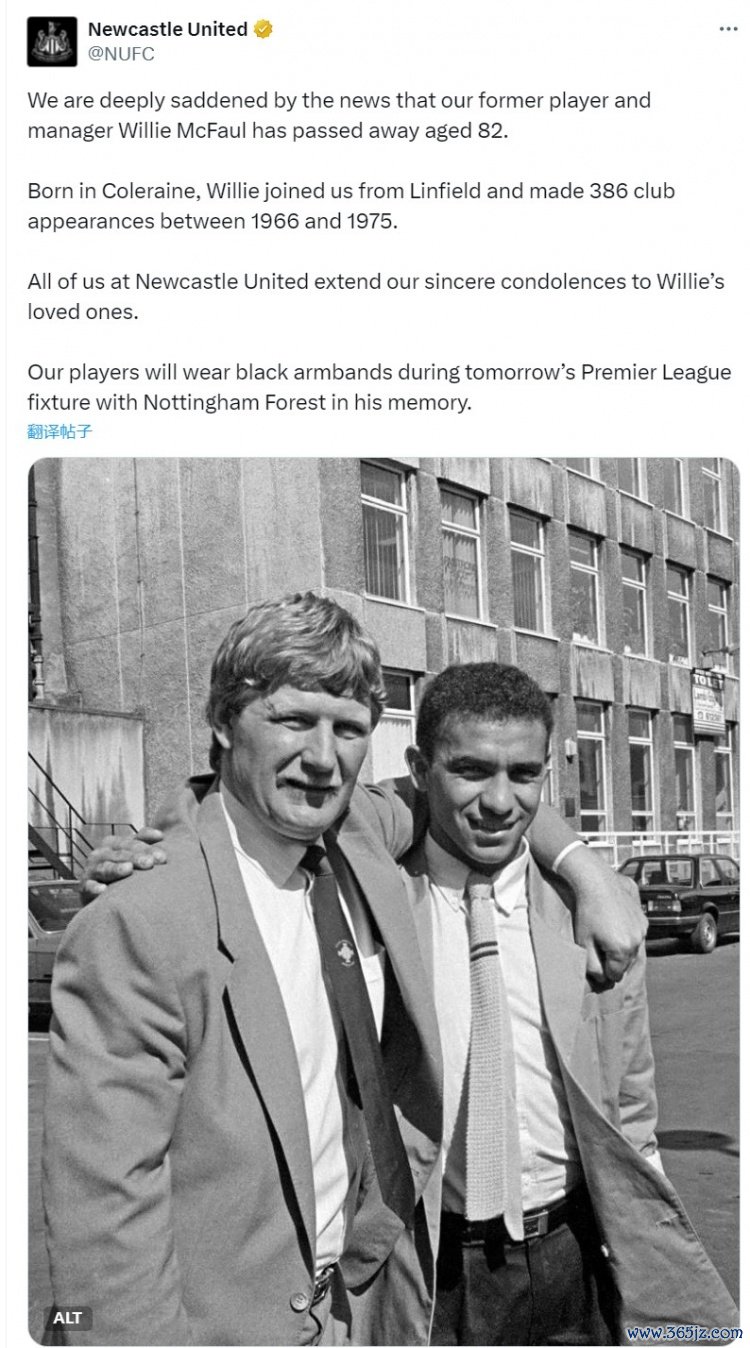 10月5日讯 纽卡名宿麦克福尔去世,纽卡官方社媒发文致哀。