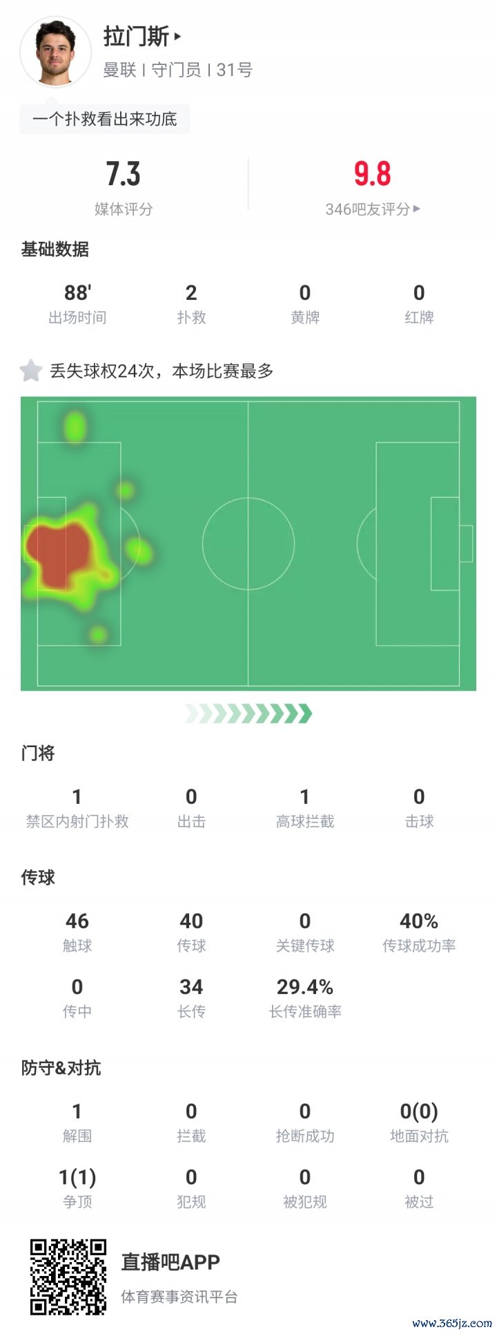 10月04日讯 英超第7轮,曼联2-0击败桑德兰,德甲曼联守门员拉门斯首秀完成零封, 游泳快讯足球直播吧表现惊艳!赛后获吧友9.8分评分。